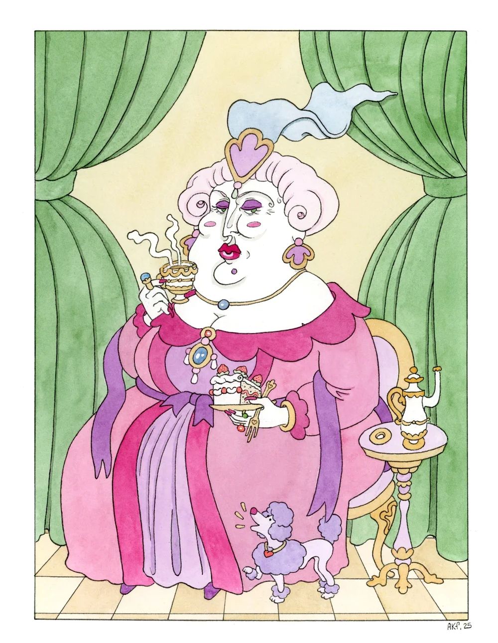 Andrew specializes in working with watercolor and pen & ink. His subject matter is diverse, but there are themes he enjoys returning to. Andrew loves to depict religious figures, frogs, spellcasters, regal ladies and scenes of unapologetic homoeroticism. Through art he likes to explore the fantastical and everyday situations all with a touch of humor.